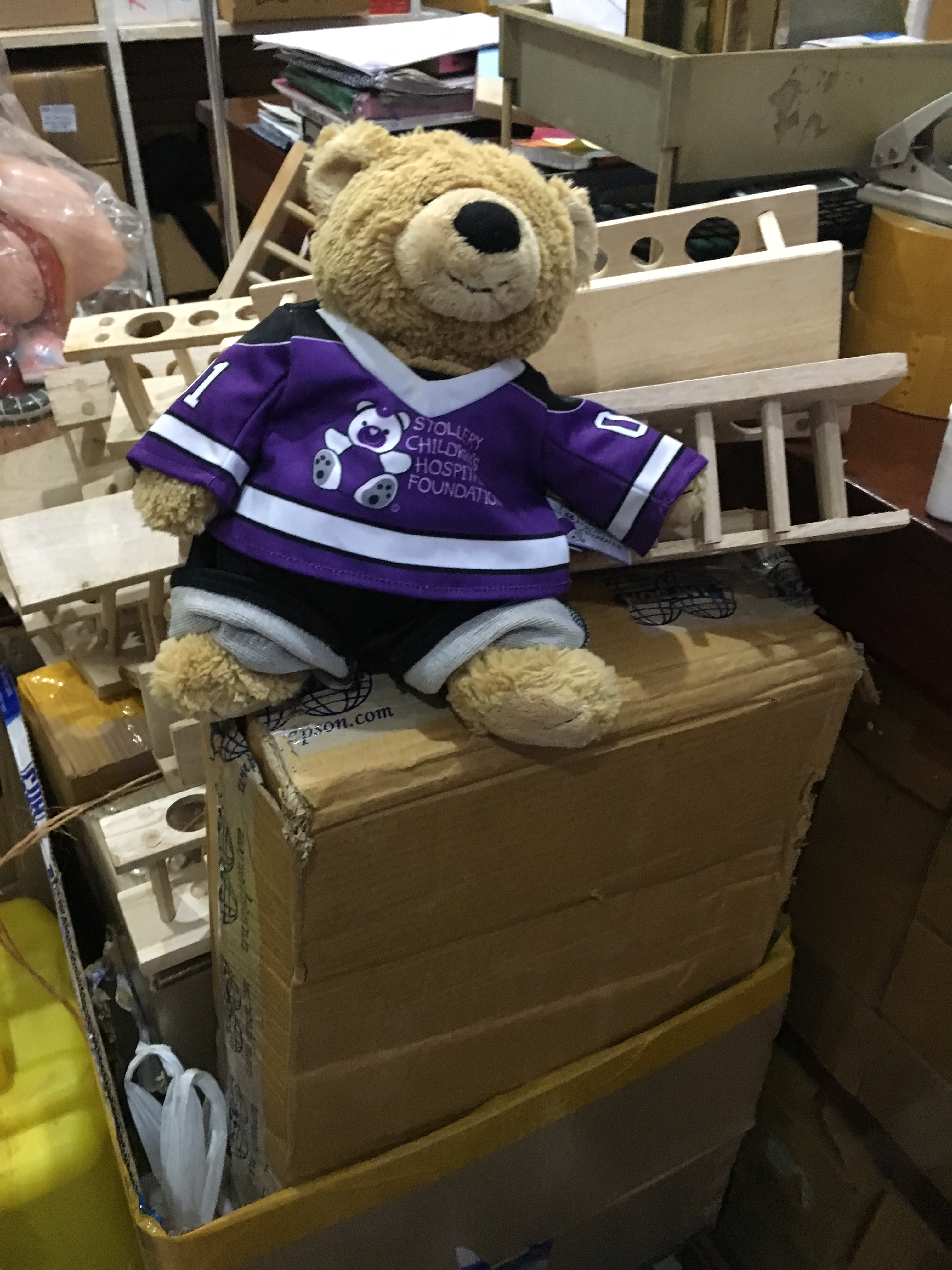 AJ Bear with all the supplies packed.