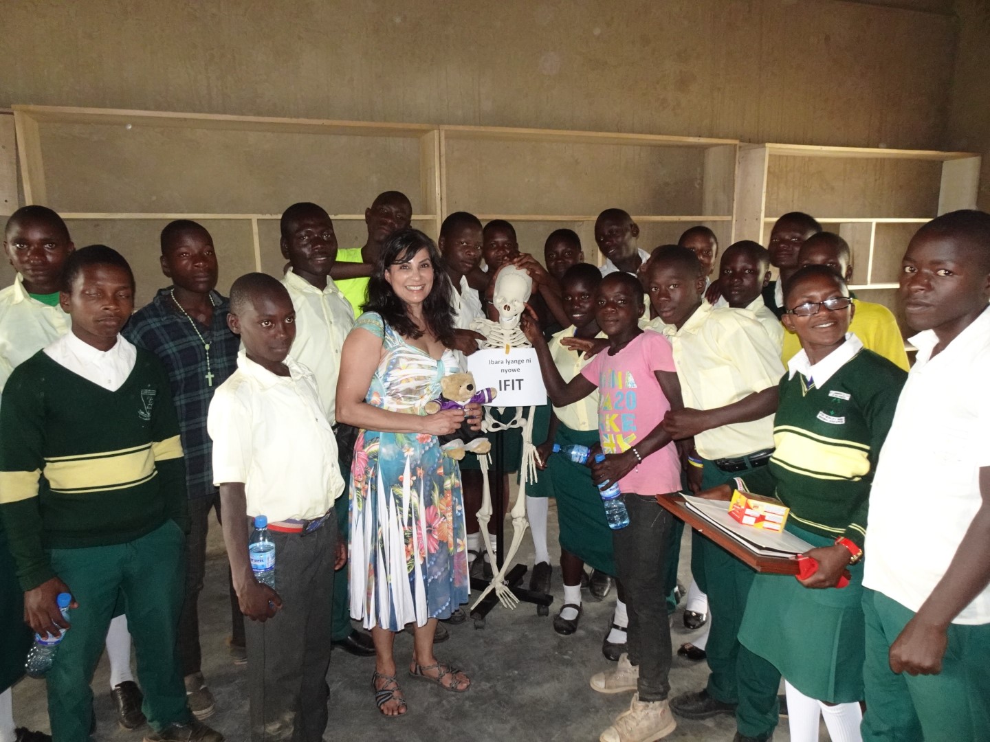I am happy to report that the building is constructed soundly and there was much excitement from all in attendance at seeing this project come to fruition. The students and teachers alike were very thrilled to see the lab supplies, as well as the new books. The anatomy skeleton was definitely the highlight as was evident by the giggles and jokes around the room especially since he came with a name.