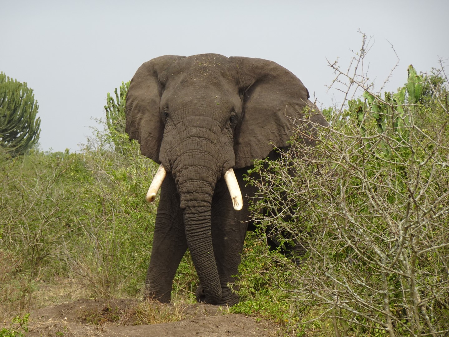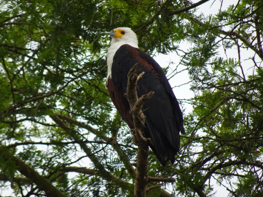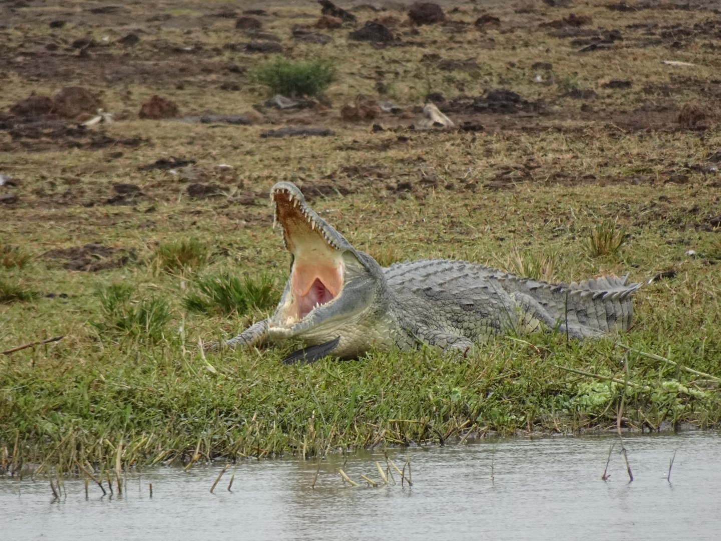 The CEO is a slave driver (he actually objects to me calling him that and instead likes to think of himself as “focused and hard working). After visiting 10 different schools- many in rural villages where we had to drive for hours on dusty roads, he finally consented to a free day. Although, I’m not sure how “free” it was since we had to get up at 0400 hours to go to Queen Elizabeth Park which is in southwest Uganda. We saw many buffaloes and cobs, as well as a few elephants and two hyenas. Leopards roam the Mweya Peninsula, which lies beside Lake Edward- unfortunately it was raining and they refused to come out. Nearby Lake Katwe is a huge volcanic explosion crater. Boats on the Kazinga Channel float past hippos and Nile crocodiles- we saw plenty of those from our little boat. The Ishasha area is home to tree-climbing lions, but once again the rain deterred them from coming out to be seen. We did however see many different species of birds- a definite paradise for the bird watcher.
