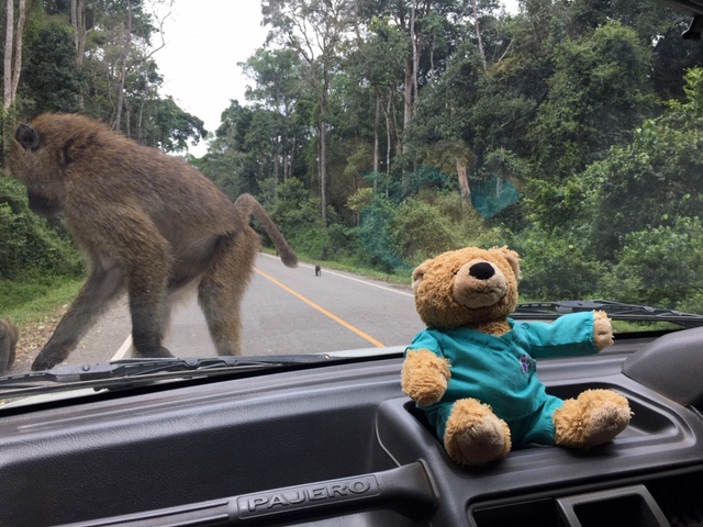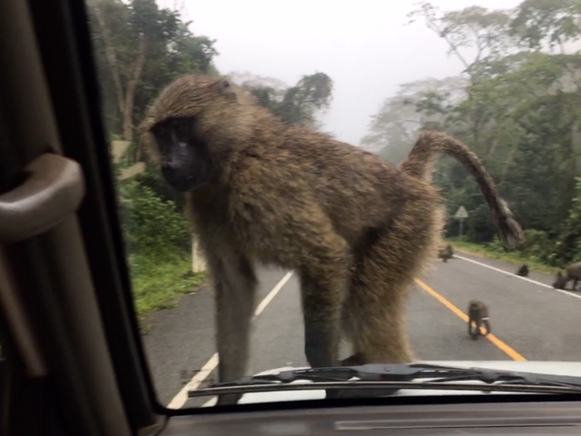Fort Portal is a beautiful town. The people are very friendly and the weather is great. I now have a new name of “Akiki” which is a pet name given to me by the Clan leader. The mountains are majestic – especially when the dust settles and you can see them clearly. The soil is fertile and the vegetation is lush. Kibale forest is close by and there are many different primates including chimpanzees, different varieties of monkeys and baboons. I was tickled pink when I saw them right on the road and the baboons are absolutely crazy and jump on the vehicles.