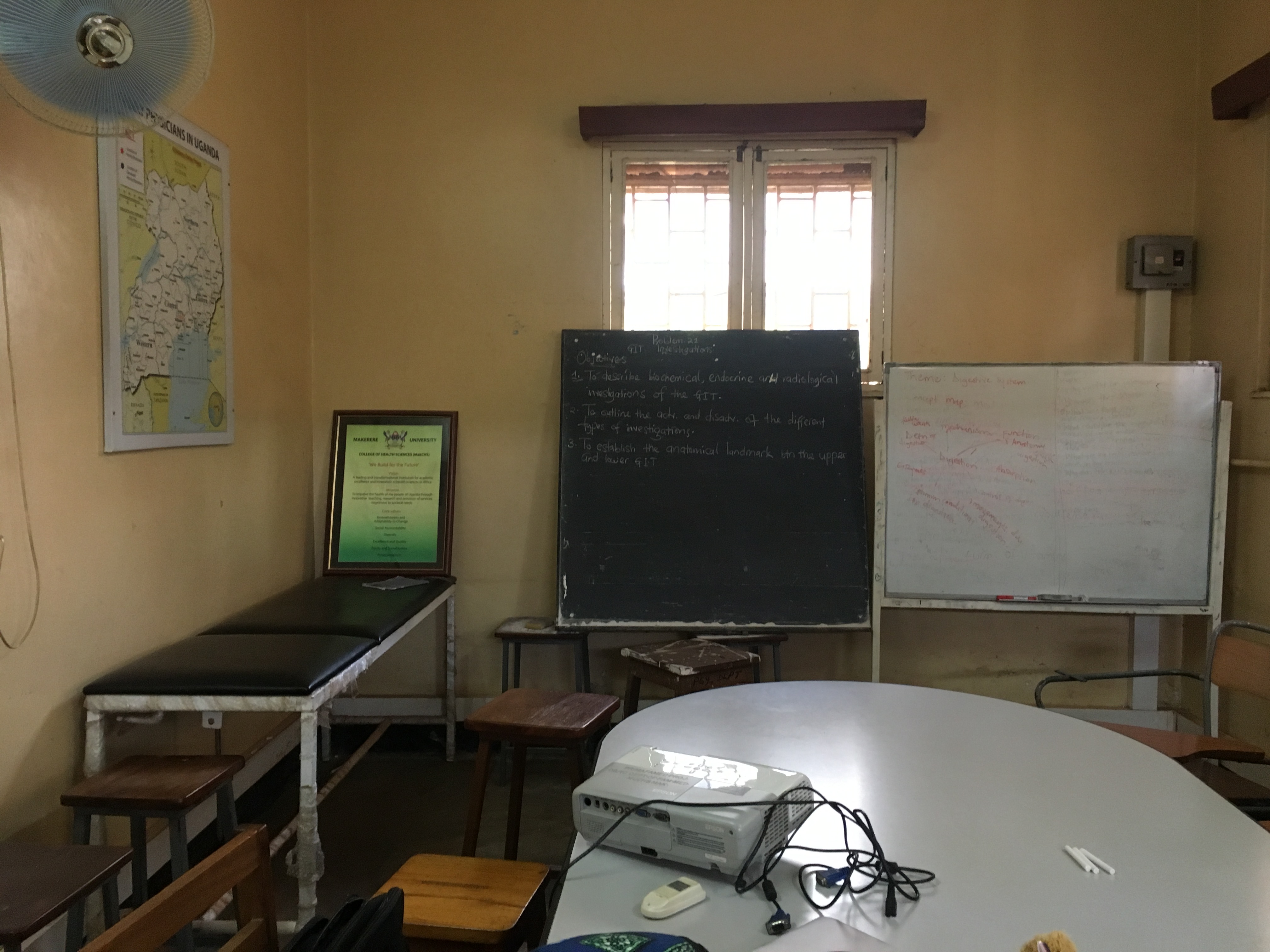 Rounds at Buhinga hospital in Fort Portal on the men’s medical ward was also an eye opener. The ward is an open unit with about 30 beds. The patients that were admitted were a mix of both non communicable diseases (NCDs) as well as communicable diseases (CDs), but isolation rooms are not available. Uganda is facing the unenviable state of having increasing NCDs without a significant reduction of CDs. Access to diagnostic testing – both lab as well as radiological imaging, is quite restricted, and one has to be a very astute physician indeed to work in a hospital setting with such limited access to diagnostic testing. When I get back to my hospital in Canada, I am going to get down on my knees and kiss the floor and I will be considerably more gracious with the radiologists when they are not able to expedite procedures in what I consider “a timely manner.”