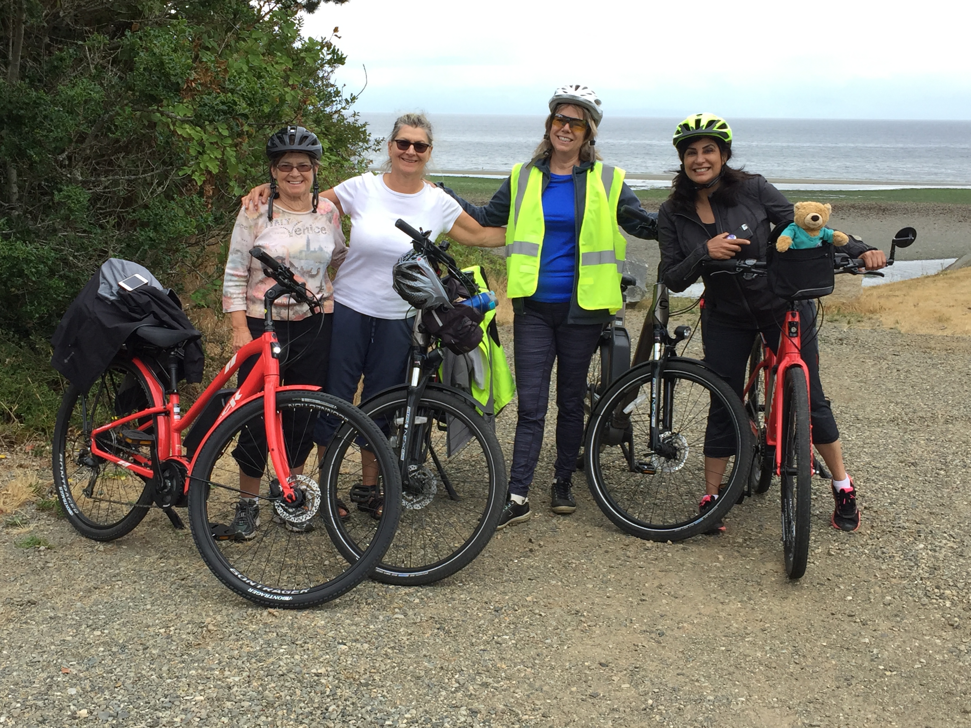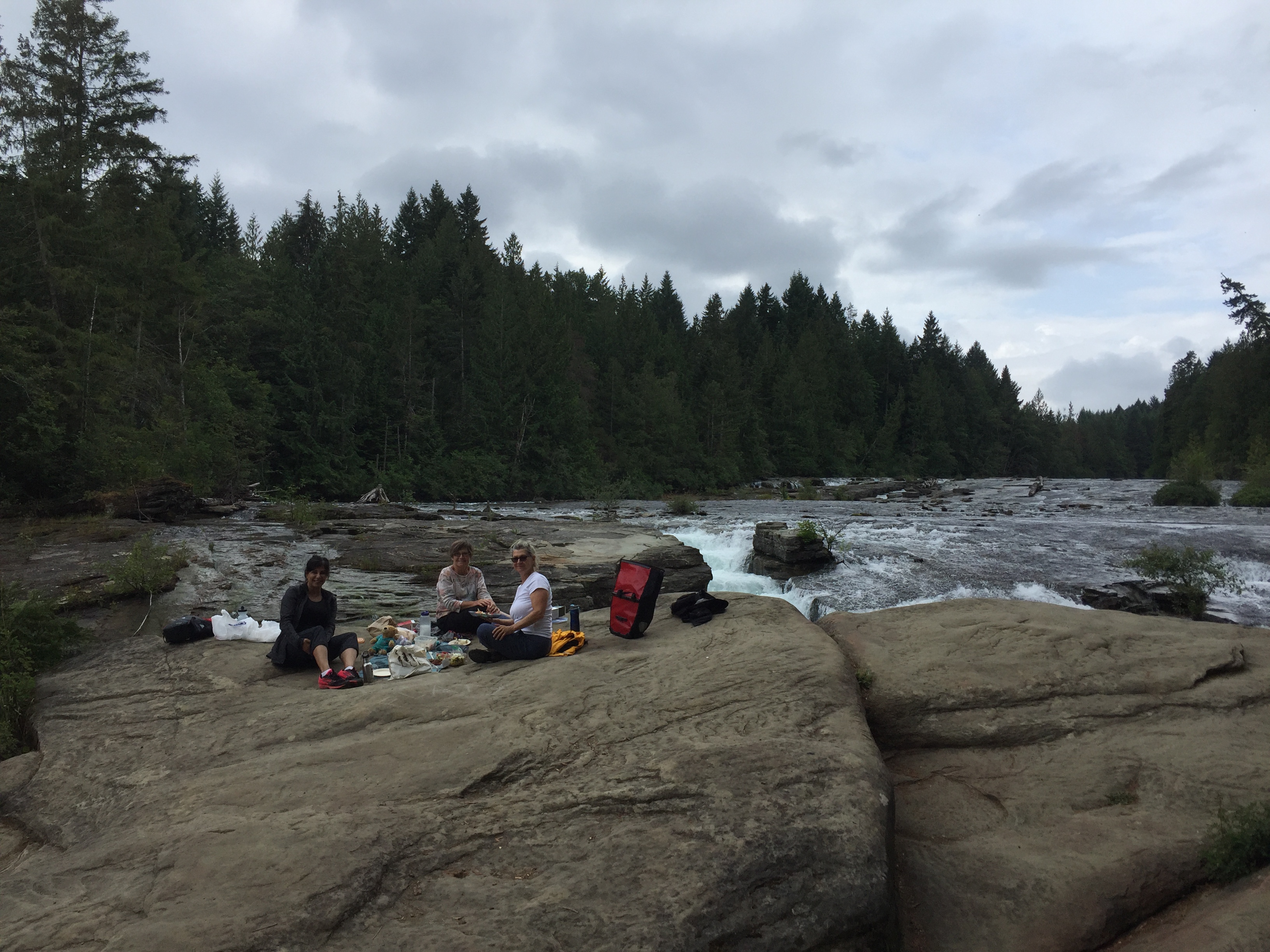 I wanted to accomplish my goal of biking 50 km and with the help of my 3 new e bike girlfriends, we set out to do that today. Our aim was to get to Nymph Falls and have a picnic and then ride back again. Unfortunately, before we reached half way, one of the ladies got a flat tire. My first thought was “is there roadside assistance for bikes?” Likely not.