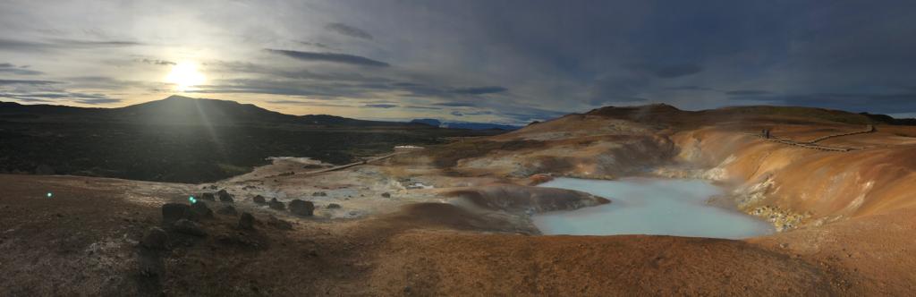 We woke up before sunrise and left our picturesque campsite to head out of the Myvatyn area and landed into Hell. No kidding. There’s a place called “Viti” which is Icelandic for “Hell”. Viti is an exceptionally large explosive crater 300m in diameter and with green water at the bottom. Not for swimming. You would burn. Very eerie.