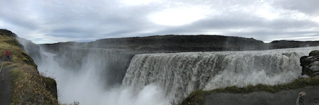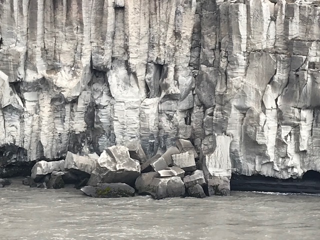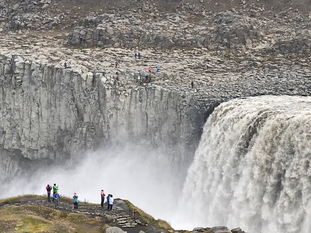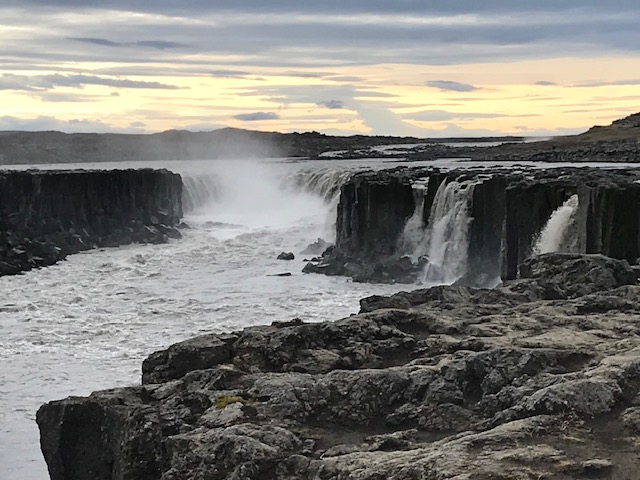 Thereafter we drove east and stopped at some magnificent falls. The Icelandic word for waterfalls is “foss:”. We saw Dettifoss which is Iceland’s most powerful waterfall and Selfoss which empties into the Greenland sea. Both were spectacular. The cliffs around the falls are gorgeous.